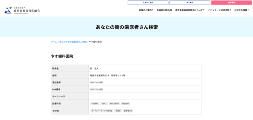 引用元:デンターネット(https://denternet.jp/link.htm?prf=46&gun=16&clinam=%A4%E4%A4%B9%BB%F5%B2%CA%B0%E5%B1%A1)