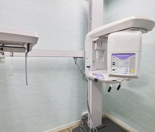 院内には歯科用デジタルレントゲンを完備しています。パノラマ撮影にも対応している装置なので、歯や顎の状態の検査を高精度で行うことが可能です。従来型の一般的なレントゲン装置に比べ、被ばく量は1/4~1/10に抑えられています。