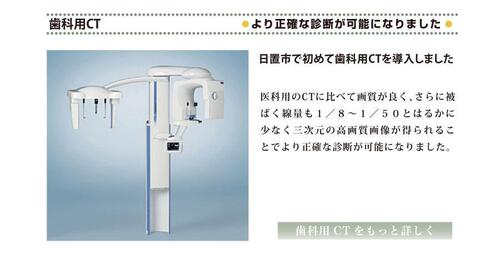 口腔内を三次元的に把握できる歯科用CTを導入しているため、従来型の二次元画像によるレントゲン検査に比べ、より正確な診断が可能。特に複雑な症例の患者にとって、歯科用CTは非常に強力なサポート装置となります。