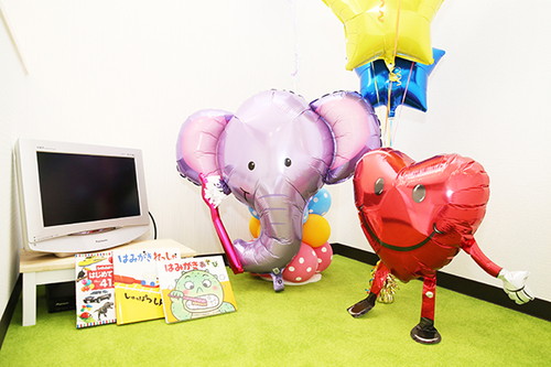 小さなお子様が歯医者嫌いにならないようにとの想いから、絵本やDVDなどを置いた楽しさいっぱいのキッズルームを完備。歯医者への通院を楽しく感じられることを目指した空間です。親御さんが治療中、お子さまの待合スペースとしても活用できます。