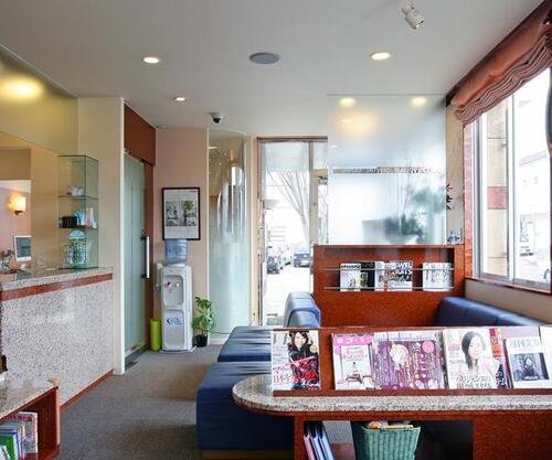 大きな窓から自然光が差し込む明るい待合室。雑誌や情報誌を豊富に揃えるなど、リラックスして待ち時間を過ごせるよう配慮されています。清潔感ある空間とソファの配置が、居心地のよい時間を演出。診療前のひとときを快適に過ごすことができます。