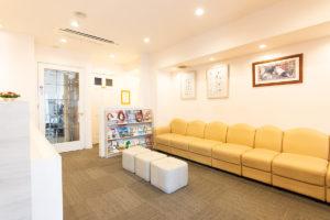 ブラウン系とホワイト系でまとめられた明るくて落ち着いた雰囲気の待合室です。ゆったりと治療を待つことができます。