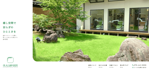 診療室の大きな窓の外には、クリニック敷地内に設けられた和風の中庭が広がっています。春夏秋冬、それぞれに表情を変える自然の景色を眺めながら、緊張を忘れてゆったりとした気持ちの中で治療を受けられそうです。