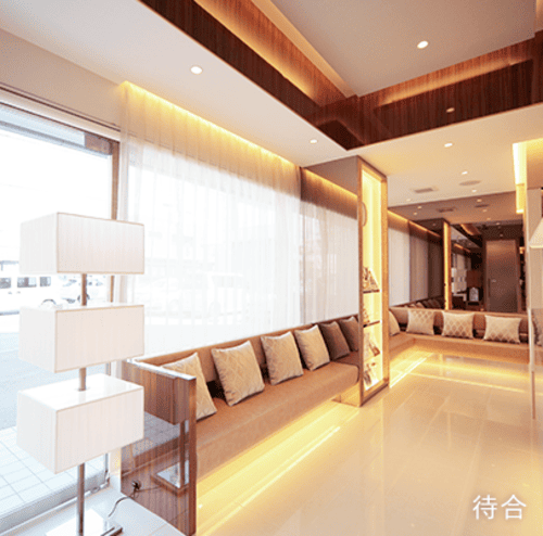 木目調の天井と、やわらかに広がる照明が印象的です。座席ごとに用意されたクッションにもたれ、リラックスした気持ちで診療を待てます。過度な掲示や装飾を控えた、シンプルで整然とした空間が保たれています。