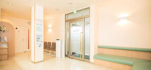 清潔感のある明るい待合スペース。木目と白を基調にした柔らかな空間に、ベンチシートや椅子がゆったりと配置されています。空気清浄機も設置するなど、院内の衛生管理を徹底。掃除の行き届いた清潔な空間で、快適な時間を過ごすことができます。
