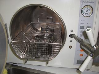 オートクレーブ(高圧蒸気滅菌装置)による歯科用器具の完全滅菌消毒を徹底。また患者ごとに医師やスタッフがマスクと手袋を交換。患者用スリッパも紫外線殺菌を行っています。