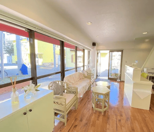 待合室には大型の窓を配置。太陽の光をふんだんに取り込めるようにしており、また床には淡い色合いの木目フローリング、内壁と天井は白基調とすることで明るい雰囲気を醸し出しています。