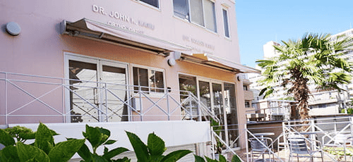 大通りから一本入った住宅街に位置し、淡いピンク色の外壁が特徴です。南国リゾートを彷彿とさせる外観となっています。子どもから大人まで、来院時の緊張感を和らげる穏やかな雰囲気が漂います。